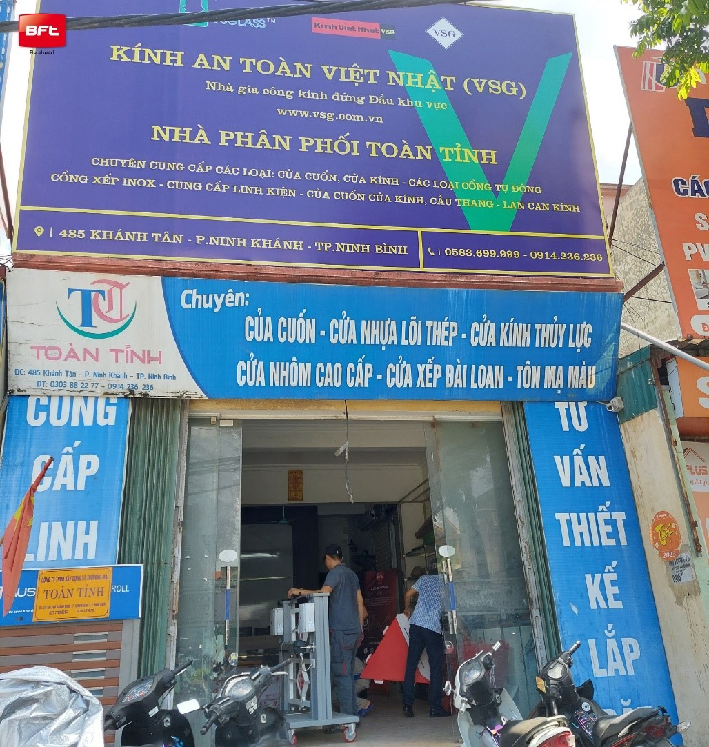 Nhà phân phối Toàn Tỉnh chính thức trở thành đại lý uỷ quyền của BFT tại Ninh Bình. Đại lý Toàn Tỉnh chuyên cung cấp các giải pháp lối vào tự động như: cửa tự động, cửa cuốn, cổng xếp inox….