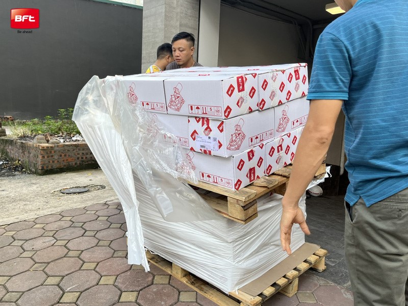 Sáng 07/8/2023, showroom BFT Việt Nam nhận 1 container 20 các thiết bị cổng tự động BFT